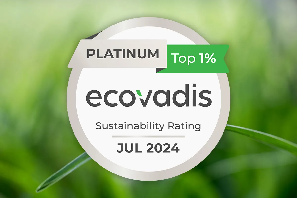 Each year the company submits to an external audit by EcoVadis, a globally trusted provider of business sustainability ratings. With a network of more than 130,000 companies under review, amongst them some of the largest global enterprises, the achievement of Platinum status indicates a performance in the top 1%.